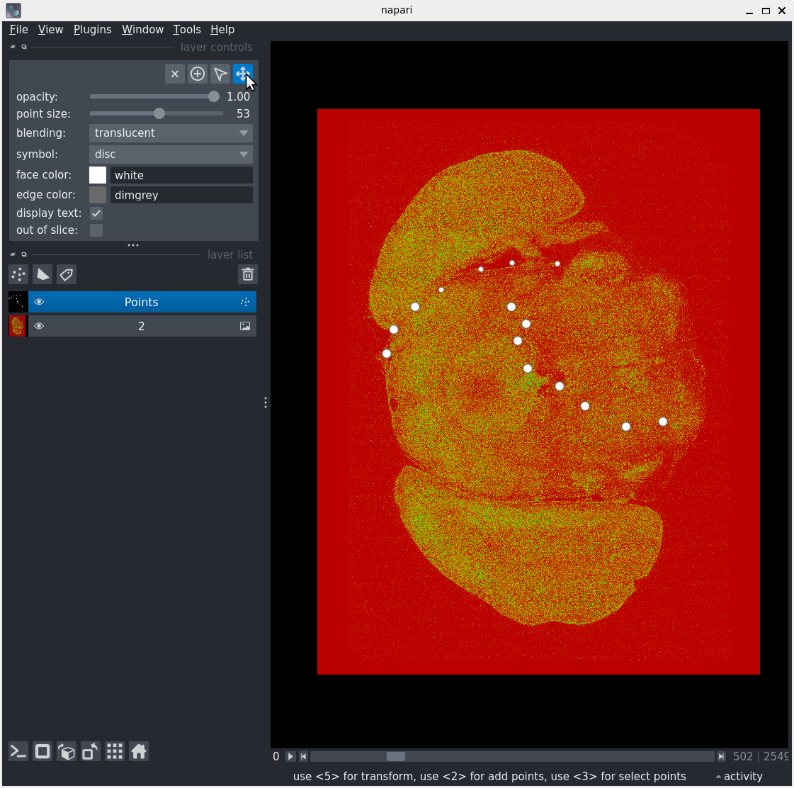 napari and follow allow with the live demoAfter following along, your screen should look something like: